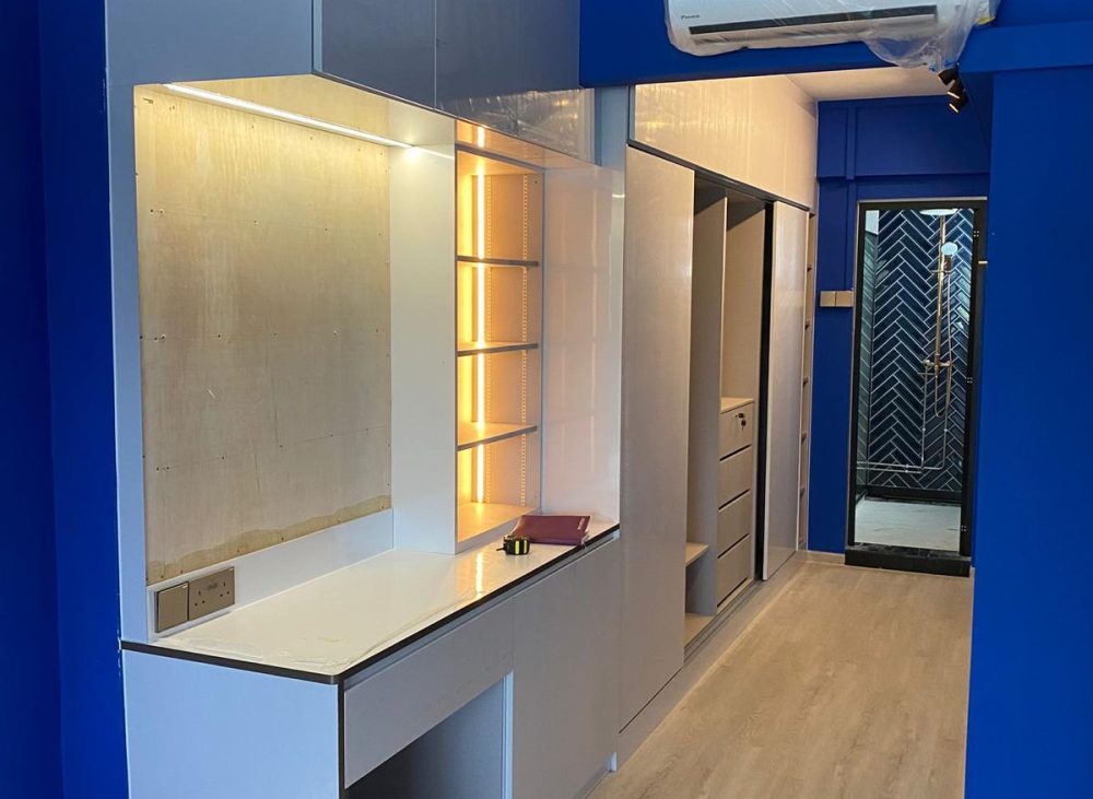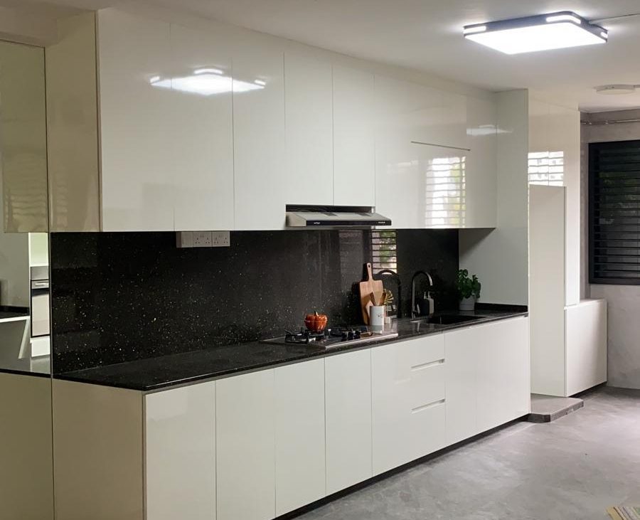 Modern Modular Kitchen with Clean Geometry This modular kitchen is defined by its strong geometry and structured layout. Straight lines and precise alignment create a sense of order and modernity. Cabinet modules are arranged logically, ensuring efficient storage and workflow. The consistent finish across surfaces reinforces visual unity. The countertop provides contrast and durability, anchoring […]